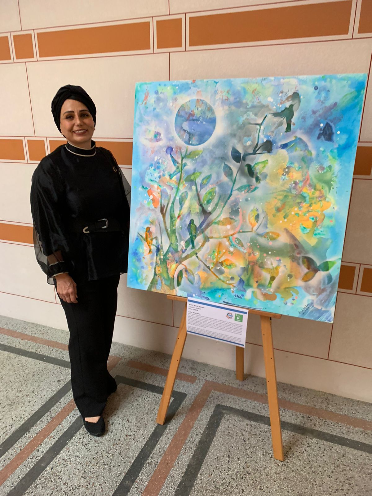 Holder of a BA in Media and a graduate of Sharjah Institute for Fine Arts (2004). She is a member of Emirates Fine Art Society and The Jordanian Plastic Artists Association. She has four solo exhibitions; “The mirrors of Colors”, Arab Cultural Club (2011); “Nostalgia”, Arab Cultural Club (2013); “Till when?”, Jordanian Plastic Arts Association (2014); “Happiness is a Choice”, Arab Cultural Club (2015). Saidam participated in many festivals, symposiums and exhibitions, including; “Lamasat” Al Dhaid Cultural Centre (2014); “Al Thamara” Alumni exhibition, Sharjah Fine Arts Institute (2014); “Spaces”, Palace Gallery Dubai (2014); “Connection 5” The Cultural Centre in Deba Al Husun (2014); “Connection 5” Emirates Fine Art Society (2014); Jarash Cultural & Art Exhibition (2014); International Art Exhibition: In all Colors, Algeria (2014); Cultural Taj, Jordan (2014); “The Mother and Dignity”, Jordan Plastic Artists Association (2013); “Noon w Funoon” Jordan Plastic Artists Association (2013); “Promising Tidings”, Jordan Plastic Arts Association (2013); “The Arrivals”, Al Serkal House, Sharjah (2010), “The Distinctive”, Bait Al Serkal, Sharjah (2004); “Flowers”, Mercato, Dubai, (2003); “The Uprising – Al Intifada”, Al Fardan, Sharjah (2002), amongst others. She also led and participated in art workshops such as the National Day workshop in City Centre, Dubai, November (2014); The National Day, Bait Al Shamsi, Sharjah (2014); “My Flag, My Identity”, Bait Al Shamsi, Sharjah (2014); Steif International Exhibition workshops, Algeria (2014); AlBalqa’ Art Society workshop, Salt, Jordan (2014); The Second Fine Art Symposium, Amman (2012); Ramadan’s Workshops at Emirates Fine Art Society (2013, 2014, 2015). She was granted awards and merit certificates, including the second prize for solo exhibitions, among 22 exhibitions (2011-2012), and the Ramadan workshops at Emirates Fine Arts Society (2012-2013).